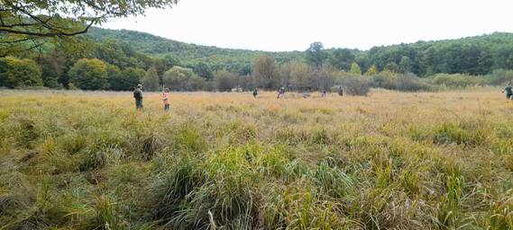 Zajlik a láprét becserjésedése, így ezeket a cserjéket vágtuk és hordtuk le a területről. Illetve, nagy mennyiségű avar, azaz túlzott mennyiségű szerves anyag halmozódik fel a területen, ami kedvez az inváziós fajok megjelenésének és az eredeti -tápanyag szegény környezethez szokott- lápi növényzet számára egyre inkább alkalmatlanná válik az élőhely. Csapatunk ettől az avartól is próbálta megszabadítani a területet, a munkánk eredménye leginkább a hatalmas kazlakkal közlekedő önkéntesek oda-vissza ingázásán, majd az erdő szélére kihordott avarosodott növényzet mennyiségén látszott.